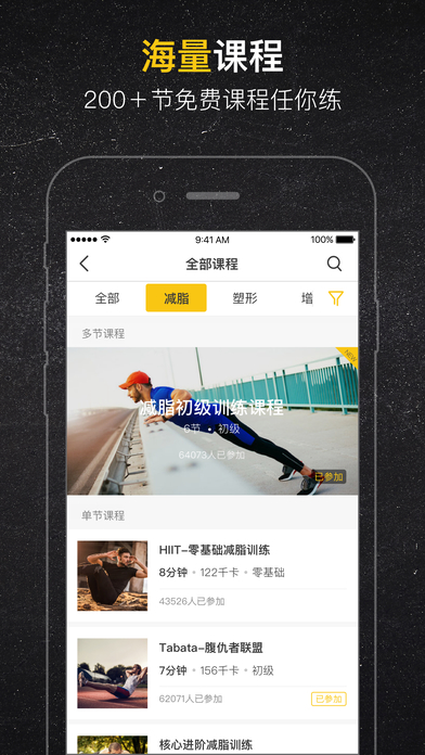 【豐富健身課程】滿足不同需求的人群,零基礎用戶也能簡單開啟健身歷程,高效達成自己的健身目標。