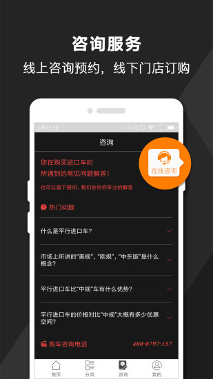 進口車商城是批車網(wǎng)業(yè)務延伸之平行進口新車電商平臺?;诜占用私涗N商推廣平行進口車,提供車源展示,汽車資訊,在線咨詢,預約訂購等專業(yè)服務。