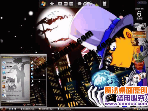 怪盜基德,充滿傳奇色彩的盜賊,喜歡在晚上作案,身著白色禮服,戴著特制的單片眼鏡。魔法桌面原創(chuàng)名偵探柯南之怪盜基德主題,把怪盜的風(fēng)范展現(xiàn)的淋漓盡致。