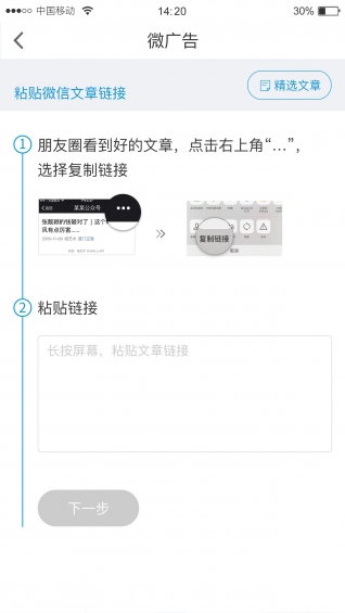 微廣告借助朋友圈熱門文章高速傳播,實現客戶挖掘、品牌宣傳、產品銷售;