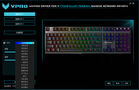 配套驅(qū)動(dòng)軟件,內(nèi)置內(nèi)存存儲(chǔ)器,可以保存3組配置文件(宏定義設(shè)置、燈光設(shè)置、自定義設(shè)置等),4顆功能按鍵除外共104鍵可獨(dú)立編程,釋放游戲、辦公、娛樂性