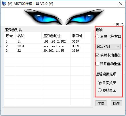 MSTSC遠程桌面連接工具是一款簡易的遠程桌面連接軟件。該軟件主要基于sqlite+net2.0,可以批量連接遠程服務器,并支持映射本地磁盤以及真實桌面和虛擬桌面的功能,滿足用戶基本的遠程桌面連接需求,操作方式簡便,可以通過全屏或窗口模式運行。