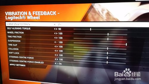 在這里修改兩個選項 SELF ALIGNING TORQUE 可修改力回饋大小,數(shù)值越低方向盤越輕,數(shù)值越高方向盤越沉