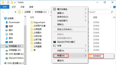 2、在 公用文件夾中單擊右鍵,選擇新建 -- 文件夾,將該新建文件夾 重命名為Documents即可!