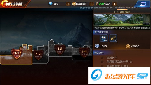 本關(guān)卡順利通關(guān)獲得一顆星,3分鐘通過(guò)獲得一顆星,指揮官英雄剩余血量高于50%獲得一顆星。