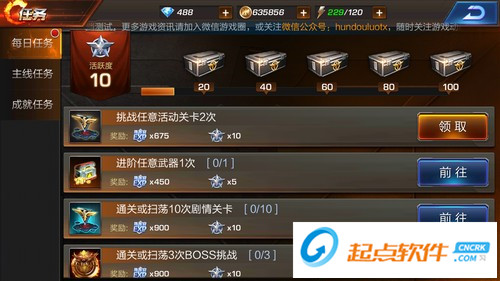 每日任務(wù)也是魂斗羅歸來(lái)中快速升級(jí)的最主要途徑之一。在游戲中,每日都有十幾個(gè)日常任務(wù)在等待著玩家來(lái)完成,完成任務(wù)之后將會(huì)有著豐厚的經(jīng)驗(yàn)獎(jiǎng)勵(lì),和一些鉆石金幣獎(jiǎng)勵(lì)。通常來(lái)講,如果能夠?qū)⑺械拿咳杖蝿?wù)都完成,有很大的幾率能夠連升一兩級(jí),即便等級(jí)高了,也能夠積累大把的經(jīng)驗(yàn)。