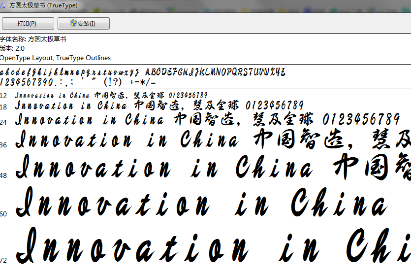 方圓太極草書正式版是一款非常實用的簡體中文草書字體。方圓太極草書字體線條飽滿,字形圓潤,整體風(fēng)格統(tǒng)一出眾,適用于藝術(shù)設(shè)計、海報廣告等多個行業(yè),需要的用戶可以來下載。