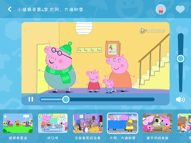 打開動(dòng)畫以后的界面同樣簡(jiǎn)潔大方,容易操作。在播放界面只有聲音的調(diào)節(jié)與暫停,沒有過多的操作,簡(jiǎn)單易懂,對(duì)于兒童來說是最容易學(xué)習(xí)的。并有喜愛收藏和動(dòng)畫選擇,可以讓孩子瞬間學(xué)會(huì)操作,即使再小的孩子也可以告別父母的陪伴自行觀看動(dòng)畫片。