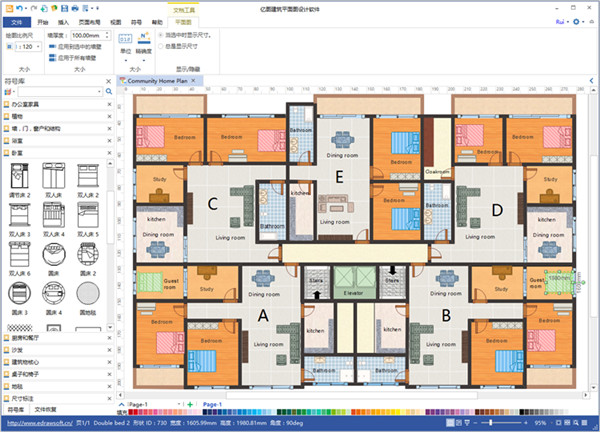 億圖建筑平面圖設(shè)計(jì)軟件是一款專(zhuān)業(yè)用于商業(yè)建筑設(shè)計(jì)、空間計(jì)劃、建筑布局、施工文件、結(jié)構(gòu)圖和設(shè)施規(guī)劃的軟件。不僅適用于室內(nèi)家居設(shè)計(jì),而且可用于建筑平面設(shè)計(jì),輕松繪制房屋建筑平面圖,室內(nèi)布置圖,更能設(shè)計(jì)消防疏散圖,管道管理圖,花園設(shè)計(jì)圖,電路電信布置圖等等。滿足您對(duì)于辦公室,餐廳,酒店,禮堂,別墅,住宅,公寓等的多種設(shè)計(jì)需求。軟件支持圖文混排和所見(jiàn)即所得的圖形打印,并且能一鍵導(dǎo)出PDF, Word, Visio, PNG, SVG 等17種格式。有Mac, Windows和Linux三個(gè)版本,可以滿足您多方面的制圖需求。億圖提供各種樣式的房屋平面圖設(shè)計(jì)模板,軟件簡(jiǎn)單易學(xué),中文軟件界面幫助您快速完成家裝平面布局設(shè)計(jì)方案,滿足您親手設(shè)計(jì)自己房子的夢(mèng)想。