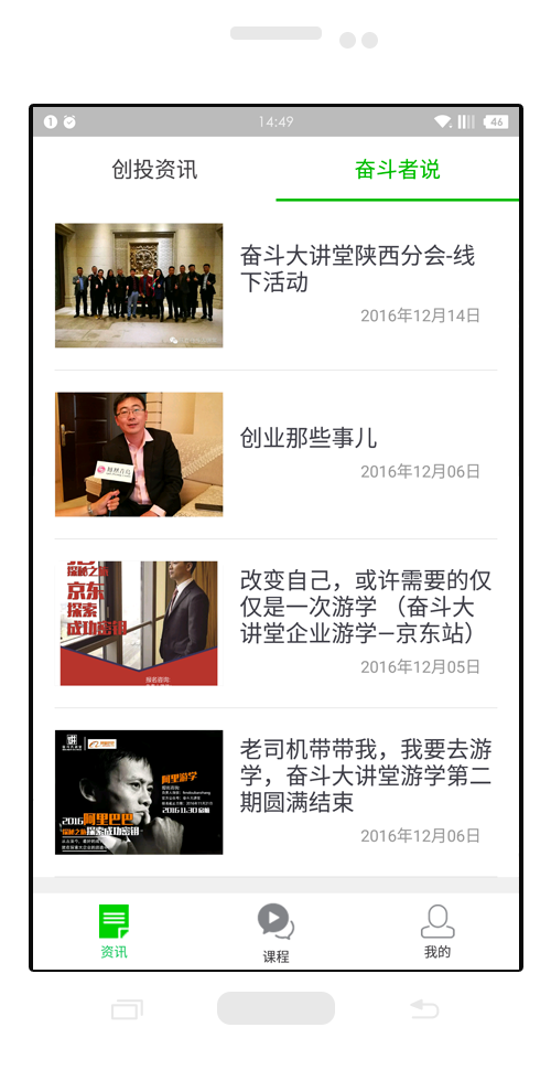 奮斗大講堂是奮斗傳媒旗下的一個創(chuàng)業(yè)家在線學習的課堂,每期邀請商界大咖、創(chuàng)業(yè)新貴、專家學者帶來1小時精彩授課,并互動15分鐘,打開一種全新的視野,為創(chuàng)業(yè)者拓展一條清晰的創(chuàng)業(yè)思路。每年將錄制50期創(chuàng)業(yè)課程,每周2期的創(chuàng)業(yè)實戰(zhàn)分享。為幫助全球更多想創(chuàng)業(yè)的人找到創(chuàng)業(yè)的方法,讓創(chuàng)業(yè)變得更加簡單。