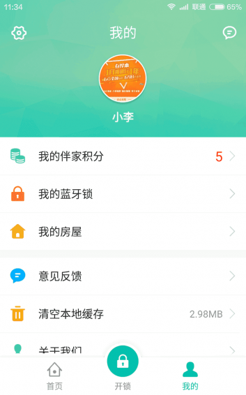 5、我的:個人在線參加小區(qū)活動,管理藍牙鎖、房屋,和平臺進行互動等。