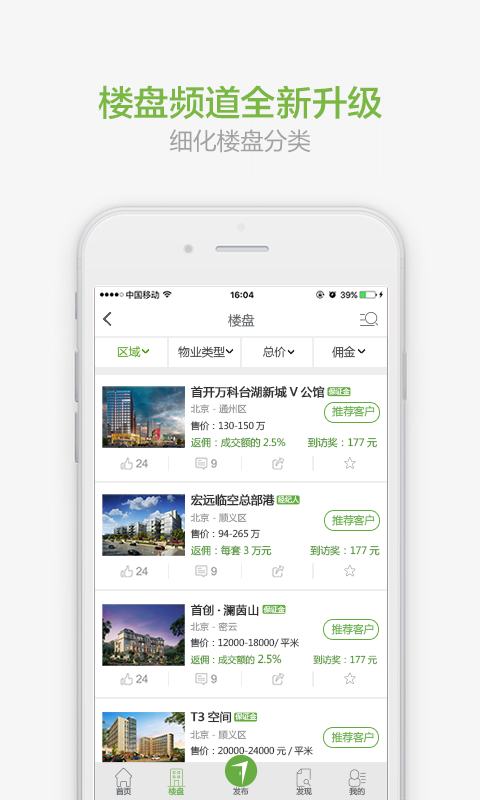 可根據(jù)區(qū)域、物業(yè)類型、價(jià)格、傭金,多重條件篩選樓盤。