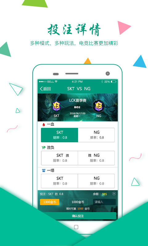 多種多樣的競(jìng)猜玩法,邊看賽事邊玩競(jìng)猜。