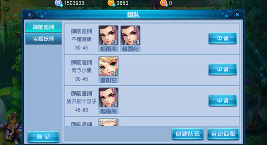 3.也可以點(diǎn)擊組隊(duì)界面加入隊(duì)伍,來加入其他玩家的隊(duì)伍,或者點(diǎn)擊右下方自動(dòng)匹配,系統(tǒng)隨機(jī)分配隊(duì)伍。