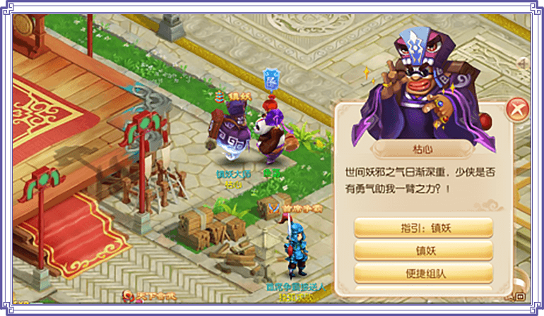 鎮(zhèn)妖活動:5人組隊前往,消滅逃逸的陰靈鬼怪,獲取高額經(jīng)驗并有幾率獲得物品獎勵。