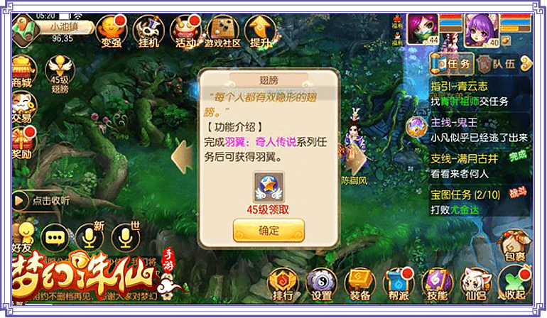 游戲初期等級較低,完成其它日常任務(wù)不僅非常費時而且收益還不高。這時最簡單且有效的升級途徑便是完成主線劇情,完成主線劇情能升到27級左右,這時可以通過完成師門繼續(xù)獲得經(jīng)驗并順利升到30級。