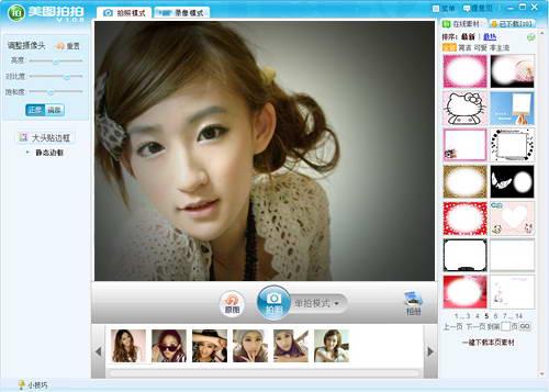 美圖拍拍是一款兼容所有主流攝像頭的自拍軟件。1秒鐘就能自拍可愛大頭貼。把電腦變成照相機(jī),輕松自拍不求人。海量邊框素材,可愛大頭貼隨心拍。實(shí)時(shí)預(yù)覽拍攝效果,真正所見即所得。還能用“美圖秀秀”處理超炫圖片特效。