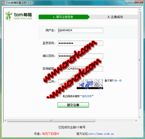 本程序用于自動(dòng)注冊(cè)Tom郵箱。