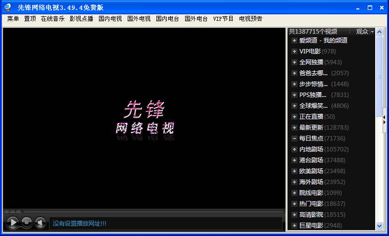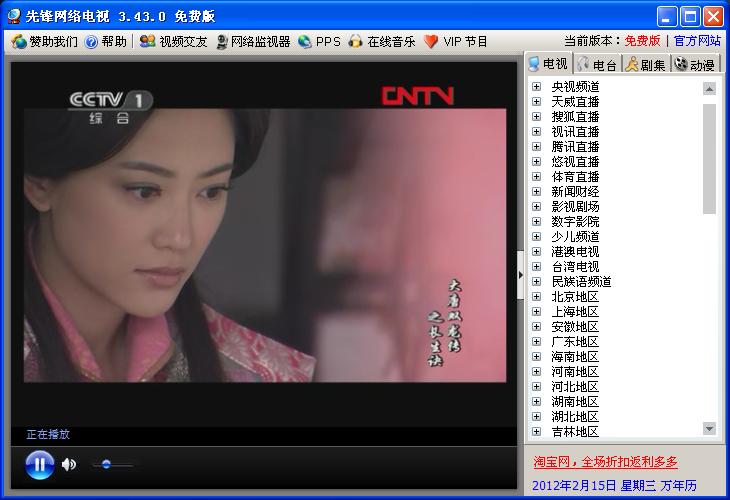 先鋒網(wǎng)絡(luò)電視是最注重節(jié)目質(zhì)量的免費(fèi)衛(wèi)星電視軟件版,專用服務(wù)器提供熱點(diǎn)影視,節(jié)目收看率極高通過(guò)獨(dú)特的合作資源,先鋒網(wǎng)絡(luò)電視免費(fèi)版提供超過(guò)500套超高清晰的衛(wèi)星電視節(jié)目,亞洲高清臺(tái)[開(kāi)獎(jiǎng)],本港臺(tái)直播,翡翠電影臺(tái)、高清翡翠臺(tái)、翡翠劇集臺(tái)、東森新聞、CHC高清電影、CHC動(dòng)作影院、星空衛(wèi)視、中天新聞、中天綜合、中天亞洲、鳳凰香港臺(tái)、鳳凰中文、TVB系列,民視無(wú)線 探索世界,探索科技,探索人文 探索調(diào)查 ESPN高清 NBA高清 中天綜合高清 HBO高清 翡翠臺(tái) 東森電影高清 衛(wèi)視電影高清 AXN電影高清,高清翡翠臺(tái) 翡翠電影臺(tái) 亞洲高清臺(tái) 東森洋片高清 東森綜合高清 緯來(lái)電影高清 中天娛樂(lè)高清 高清影院 東森新聞 三立新聞 TVBS新聞 本港開(kāi)獎(jiǎng)臺(tái) 衛(wèi)視體育臺(tái) 衛(wèi)視體育臺(tái)灣 香港有線體育臺(tái) 英超直播 廣東體育 NBA直播 勁爆體育 超級(jí)足球頻道 歐洲足球 ESPN亞洲 ESPN臺(tái)灣 香港有線NBA 中超直播1.2臺(tái) TVB翡翠臺(tái) 臺(tái)灣中視 中天綜合 臺(tái)灣華視 臺(tái)灣臺(tái)視 鳳凰衛(wèi)視 國(guó)家地理高速 迪士尼卡通國(guó)內(nèi)中央及各省衛(wèi)星電視節(jié)目等全球著名電視節(jié)目