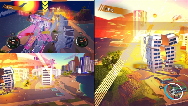 只要擺動你的高爾夫球桿,甚至可以把遠處最高的大樓擊個粉碎——或阻礙你的機器人高爾夫球友。多達四位玩家可以在由草地、城市、山嶺和環(huán)月軌道所構(gòu)成的機器人高爾夫巡回線路上一展身手。用分屏或聯(lián)機方式,初露鋒芒的機器人駕駛員可以來場瘋狂的實時高爾夫比賽,經(jīng)典旋轉(zhuǎn)的格斗競技,甚至用自定義規(guī)則創(chuàng)造出個性化的機器人高爾夫球賽!
