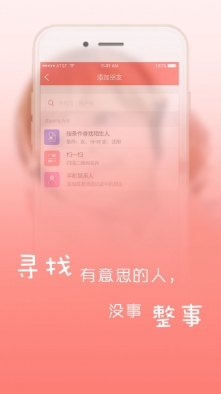 零零逅app是一款方便快捷的聊天社交軟件,該軟件為用戶尋找身邊有意思的人,幫助用戶拓展交友圈,同時(shí)用戶還可以在這里投放創(chuàng)新思維,讓自己去追逐夢(mèng)想。