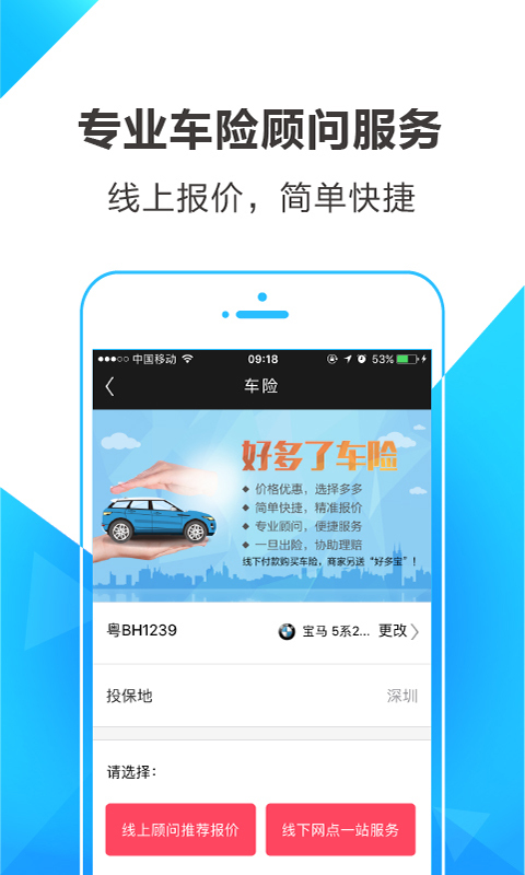 線下到店購(gòu)買(mǎi),專(zhuān)業(yè)車(chē)險(xiǎn)顧問(wèn)解決用戶(hù)不懂車(chē)險(xiǎn)的顧慮。