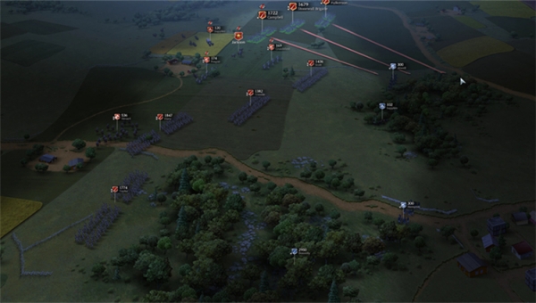 你可以派遣散兵隊(duì)去偵查前方那些山丘?;蚴羌Y(jié)大量旅團(tuán)編制成一個(gè)大型師團(tuán),如果有必要。讓騎兵下馬,變?yōu)轵T兵步戰(zhàn)隊(duì),從而更難被敵方發(fā)現(xiàn),或是發(fā)動(dòng)一個(gè)快速的側(cè)翼打擊,劫掠敵方后勤補(bǔ)給。補(bǔ)給在游戲中的地位舉足輕重,你必須謹(jǐn)慎策劃補(bǔ)給線并提供保護(hù),否則戰(zhàn)斗將會(huì)被迫早早結(jié)束。