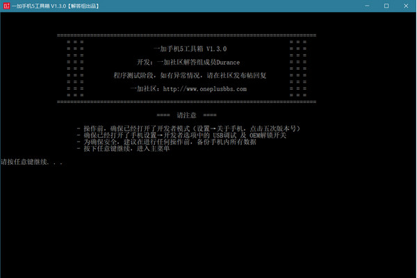 本工具僅適用于一加手機5,其他機型切勿嘗試。