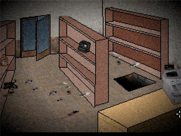 7、進超市拿照相機和酒,槍裝上子彈,看看那個洞,給那只僵尸一槍,拿走眼鏡給外面的黃頭發(fā)男人,讓他加入你,最后給照相機裝上電池,對著墻上的畫拍張照,走人。