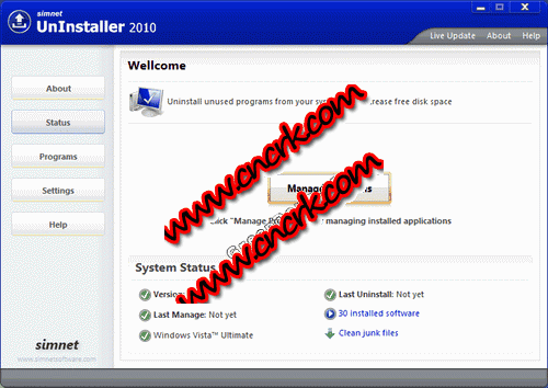 Simnet UnInstaller V2.4.5.1 英文綠色免費(fèi)版 Simnet Uninstaller是一個(gè)易于使用的和絕對(duì)免費(fèi)的卸載安裝的應(yīng)用程序管理器。每個(gè)應(yīng)用程序安裝在計(jì)算機(jī)上降低了可用硬盤空間,降低了系統(tǒng)的性能。 Simnet Uninstaller很容易讓你決定要卸載的你很少使用的應(yīng)用程序,清理出更多的磁盤空間。完全不會(huì)留下任何痕跡地移除應(yīng)用程序。還可修復(fù)無(wú)效的安裝項(xiàng)目