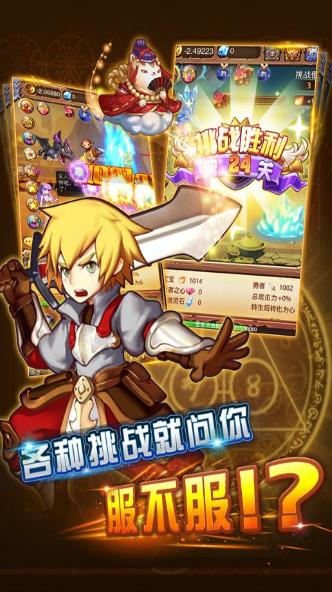 不服小天王,融入了橫版推圖、經(jīng)典動畫人物、劍與魔法等元素,是一款對操作難度不高,但可玩性很強的游戲。在這款游戲中有花樣繁多的裝備合成系統(tǒng),玩家可以在不斷的刷圖中提自己的人物,最終擊敗所有不服你的人。不服小天王是一款精美細膩帶有動漫色彩的角色扮演手游,專為懶人玩家打造,讓你一天24小時不間斷的升級,特色玩法符合玩家口味,一起來為了女神而戰(zhàn)斗吧!