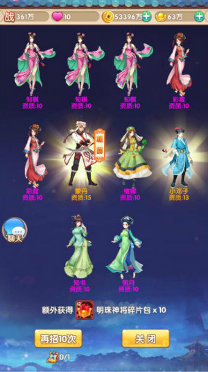 10.燕子學(xué)藝:別以為刷副本只是為了升級,在還珠格格里面,在副本獲得的星星可是直接影響主角的卡牌品質(zhì),隊(duì)伍上陣人數(shù),還有小伙伴人數(shù)的。更多的還得你們自己去挖掘,所以得多刷副本,多點(diǎn)提升燕子學(xué)藝的等級