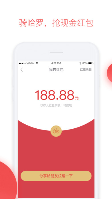 Hellobike是一款輕活自由的綠色出行共享單車。曾經(jīng),科技的進(jìn)步讓世界更近,然而今天的我們,夢想仍會堵在上班的路上,幸福擠在狹小的車廂。HelloBike的出現(xiàn),讓你和這一切say goodbye!手機(jī)掃碼,輕松出發(fā),告別車樁,自由還車!每天,用一抹紅和這個城市問好!HelloBike,HELLO,CITY!【功能介紹】