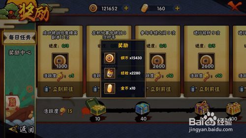 每天進(jìn)行副本的戰(zhàn)斗,可以積累一天的活躍度的,然后你可以通過一定的活躍度,開這個(gè)箱子,箱子里的好東西就多了,不僅是有金幣,而且還有大額的經(jīng)驗(yàn)。