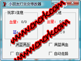 本程序用于輔助游戲《小朋友打交交2》(又名“小斗士2”)。程序可以自動鎖定玩家1與玩家2的血量與藍值為500.同時玩家1