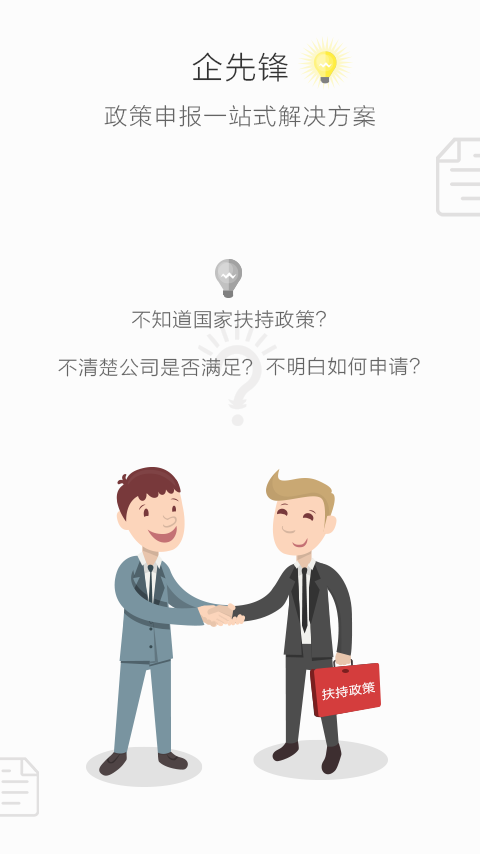 3000萬中小微企業(yè)負(fù)責(zé)人、政策申報(bào)人員必備工具,助力企業(yè)資金實(shí)力必備軟件!企先鋒是中小微企業(yè)扶持政策一站申報(bào)平臺(tái),一方面提供全面、精準(zhǔn)、及時(shí)的申報(bào)政策信息,另外連接專業(yè)的服務(wù)機(jī)構(gòu),同時(shí)開發(fā)了申報(bào)項(xiàng)目評(píng)估功能,幫助企業(yè)快速判斷可申報(bào)項(xiàng)目,助力企業(yè)資金實(shí)力!