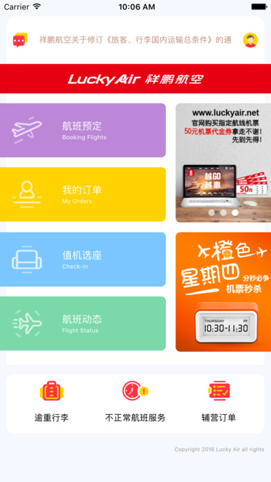 1.預(yù)訂機(jī)票:祥鵬全體精彩航線匯聚于此,竭誠(chéng)滿足您的出行需求;2.便捷退票:可在手機(jī)上提交退票退款申請(qǐng),告別繁復(fù)流程;