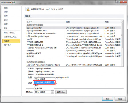2、*.dll:這是用一些編程軟件接入PPT中編譯所生成的COM加載項。安裝這個插件呢,laose提供的大都是bat文件進行注冊。2010版本中手工安裝方法如下: