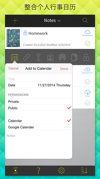 + 筆記加入您的iOS或Google行事歷