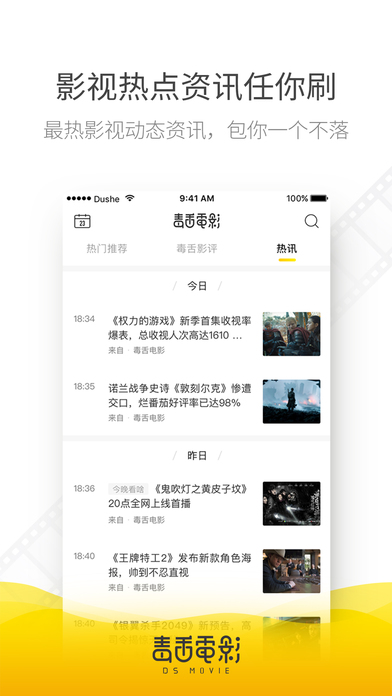 毒舌電影app希望為電影愛好者建立一個功能強(qiáng)大且好用的電影app,只發(fā)布最具價值的影評,只推薦優(yōu)秀和大師之作的電影,培養(yǎng)好的電影品味毒舌電影評分:薦好片、罵爛片、找資源的一站式影迷平臺,讓你從此告別爛片!