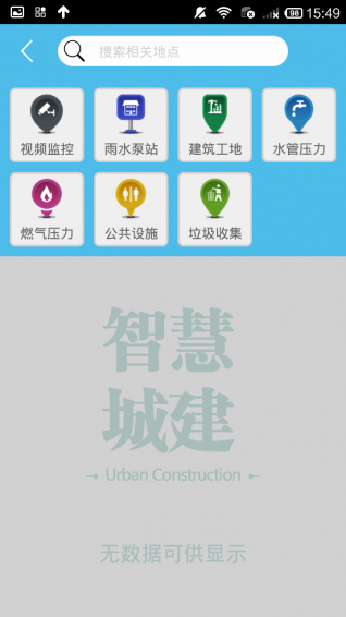 智慧城建應(yīng)用主要用于將智慧城建網(wǎng)站瀏覽的部分通過APP的方式在移動端上呈現(xiàn),該應(yīng)用主要包括了應(yīng)急指揮中心信息的查看,監(jiān)控視頻的查看,地圖資源的查看及使用。該應(yīng)用方便了使用APP的方式管理查看智慧城建項目的相關(guān)信息。