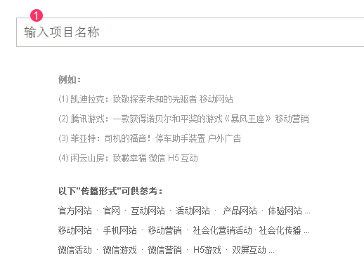 輸入名稱盡可能包含品牌名、項(xiàng)目名稱、及傳播形式