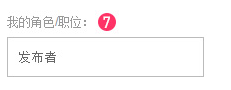 請輸入您在項(xiàng)目中所屬角色,(如下圖 7)默認(rèn)為“發(fā)布者”(如:你可能是設(shè)計(jì)師,文案,創(chuàng)意總監(jiān),公關(guān)負(fù)責(zé)人等等...)