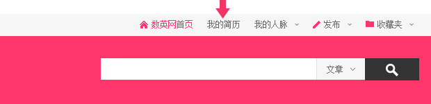 (1) 在數(shù)英網(wǎng)首頁的右上方點(diǎn)擊“我的簡歷”(如下圖),進(jìn)入我的簡歷頁面。