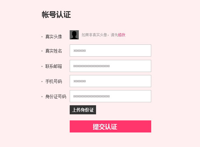 (3) 如實(shí)填寫本人真實(shí)身份信息,上傳真實(shí)本人頭像照片,上傳本人有效的身份證件照片,點(diǎn)擊“提交認(rèn)證”認(rèn)證 (如下圖) 。