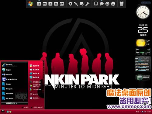 林肯公園電腦桌面主題 簡體中文官方安裝版 魔法桌面原創(chuàng)XP仿Vista桌面主題——林肯公園。時尚個性的紅黑色彩搭配,磨砂質(zhì)感的界面效果,便構(gòu)成了這一款個性十足的林肯公園桌面主題。本主題包含三種字體版本,默認(rèn)是宋體版,您可以在“外觀”-“字體大小”處切換至微軟雅黑版或是Arial字體版。此主題還附帶精美的仿Vista登陸界面哦~
