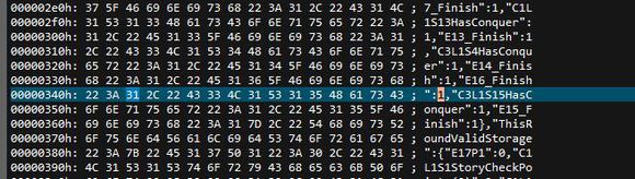 我們主要關(guān)注"ThisSaveValidStorage"部分,它記錄了游戲劇情相關(guān)內(nèi)容