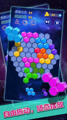 曾登上首頁推薦的超有創(chuàng)意的六邊形消除游戲——六邊形消消樂是一款基于俄羅斯方塊、類似于1010中文版的魔性方塊達(dá)人小游戲,還可以將六邊形消消樂游戲得分分享到社交平臺,和好友互相曬高分也不失為殺時(shí)間的利器。但是要得到六角消除游戲高分,就算是方塊達(dá)人也不是件容易的事,也更需要方塊達(dá)人你投入更多的腦力咯。【玩法】