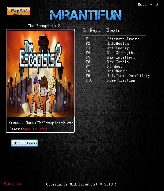 脫逃者2九項(xiàng)修改器,具備無限生命、無限能量、無限金錢、無限道具耐久、最大力量、智力、輕松制作等九項(xiàng)修改器功能,脫逃者2v1.0九項(xiàng)修改器由“MrAntiFun”制作,喜歡的玩家不要錯(cuò)過哦!