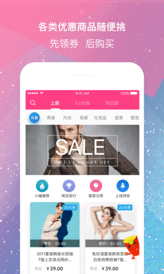 找券網(wǎng),網(wǎng)羅天下優(yōu)惠券。匯聚淘寶天貓京東等主流電商賣家的內(nèi)部優(yōu)惠券,先領(lǐng)券再下單,每年能省好多錢。邀請好友領(lǐng)券下單,還能賺取商家的推廣抽成。【功能介紹】